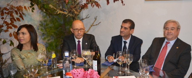 Salvador Díez, presidente del Consejo General, y Rafael Trujillo, del Andaluz, respaldaron este homenaje en una cena con motivo del XIV Aniversario del Colegio onubense que contó con un centenar de participantes, entre colegiados y empresas